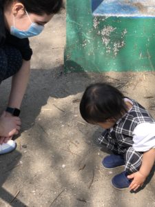 Teacher Ellie! It’s snowing!と園児が可愛い一言。KIPの近くには、満開の桜が咲いています。